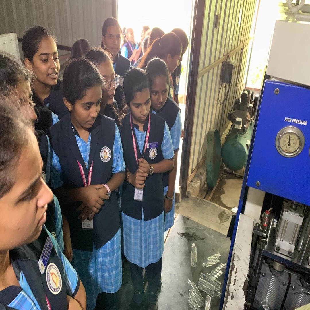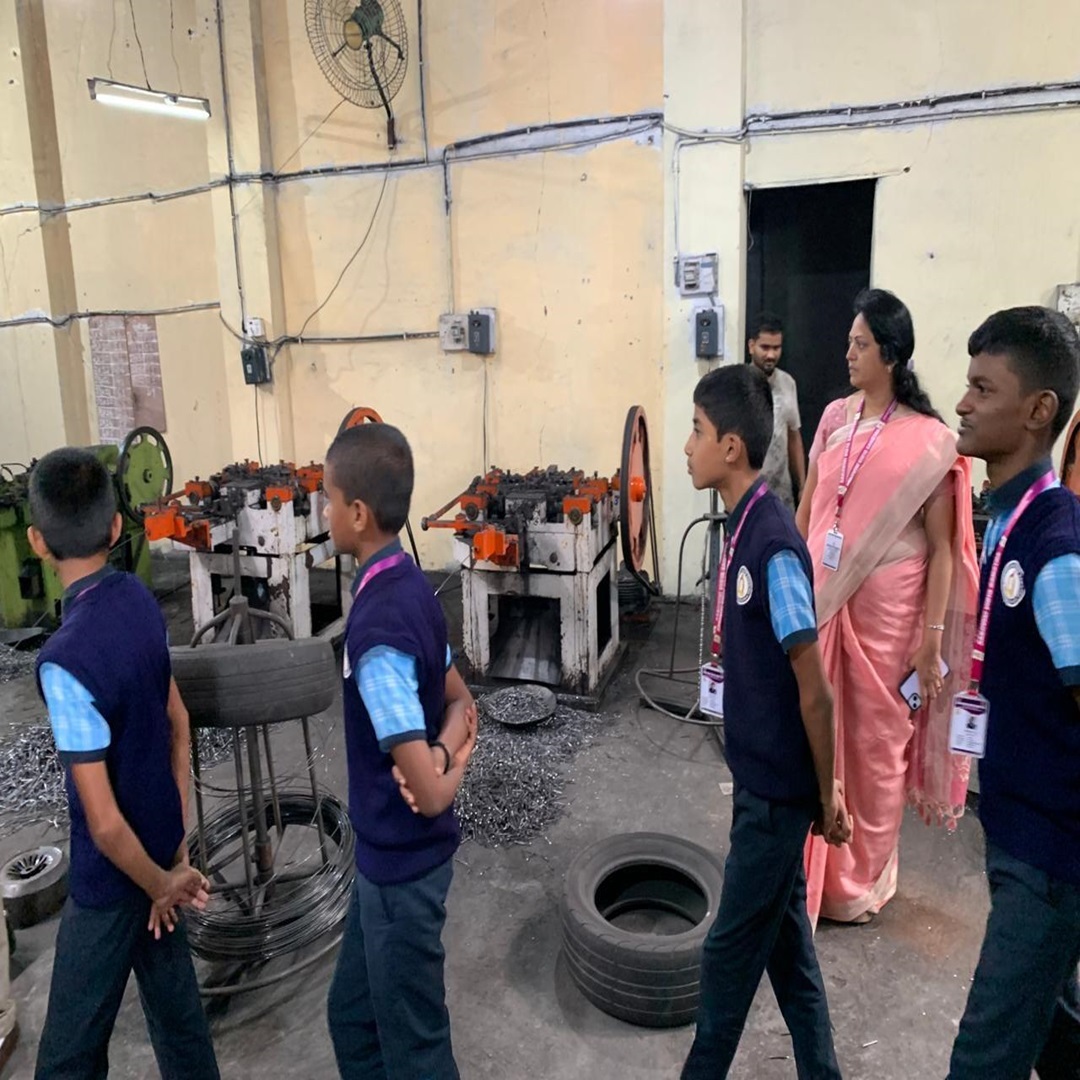 Emphasizing the value of direct, real-world experience for learning and discovery. Today, our students from Grades 7 to 10 visited Akshaya Industries, a unit engaged in the manufacturing of water bottles, nails, and cement bricks.